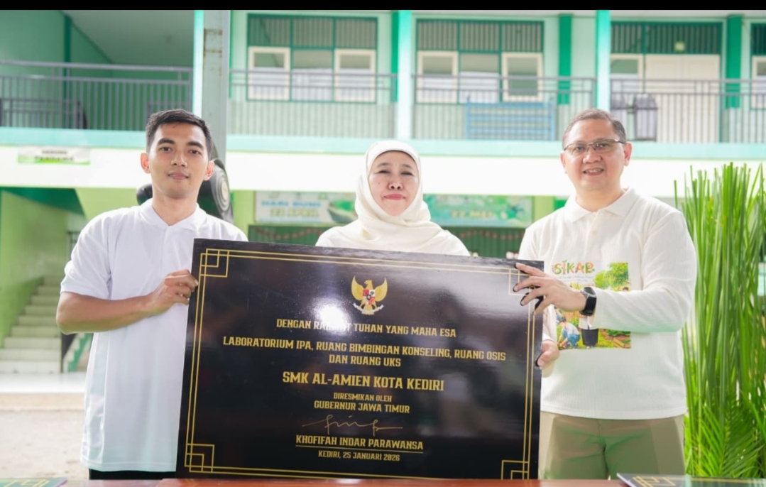 Kediri, Lintas Surabaya – Gubernur Jawa Timur Khofifah Indar Parawansa meresmikan hasil rehabilitasi dan revitalisasi 26 SMA, SMK, dan SLB negeri maupun swasta di Kabupaten dan Kota Kediri, Minggu (25/1), sebagai bagian dari transformasi pendidikan Jawa Timur yang berkelanjutan.