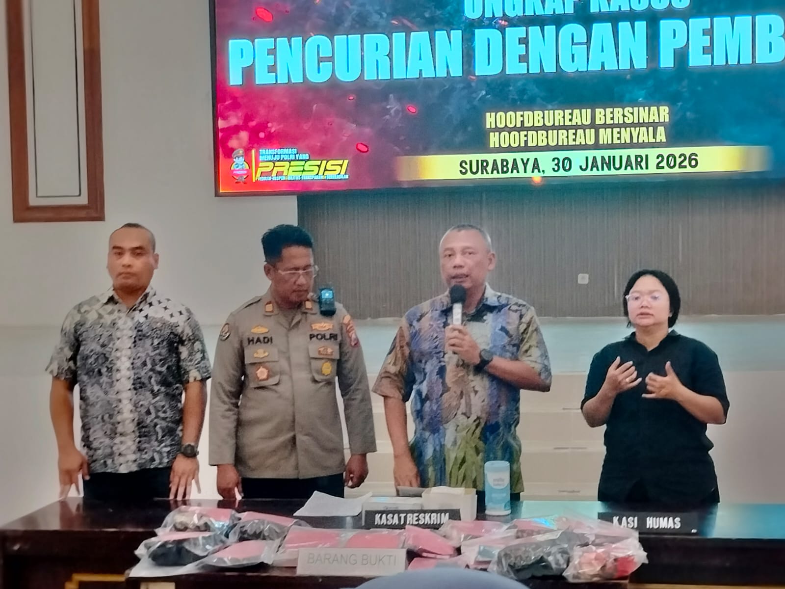 Surabaya, Lintas Surabaya – Polrestabes Surabaya berhasil mengungkap kasus pencurian emas yang terjadi di sebuah toko emas Fajar Pacarkeling Surabaya. Peristiwa tersebut terjadi pada 25 Desember 2025, dengan pelaku berjumlah empat orang warga negara asing (WNA).