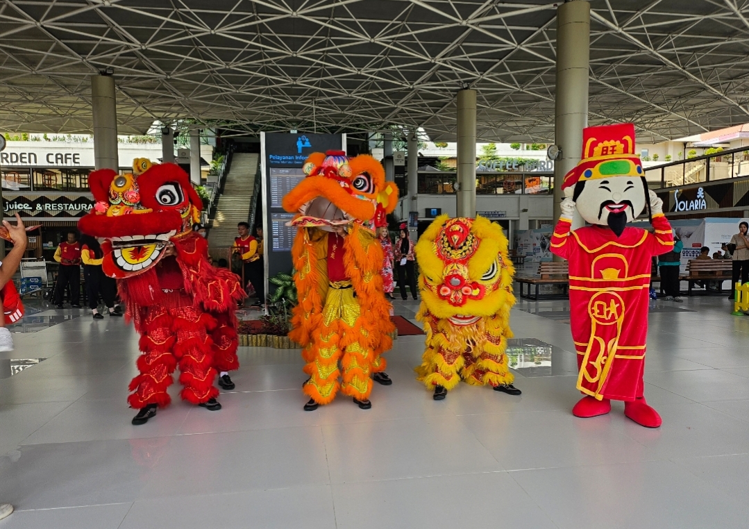 Pertunjukan barongsai dan naga liong digelar di area lobby keberangkatan, dilanjutkan dengan parade keliling terminal yang menyapa langsung para penumpang. Atraksi tersebut sukses menarik perhatian pengguna jasa yang antusias mengabadikan momen dan berinteraksi dengan para pemain.