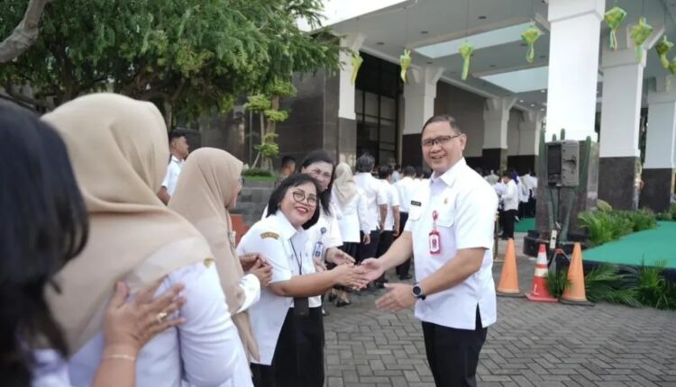 Interaksi berlangsung penuh rasa hormat dan kekeluargaan, mencerminkan kedekatan antara pimpinan dan seluruh jajaran ASN.