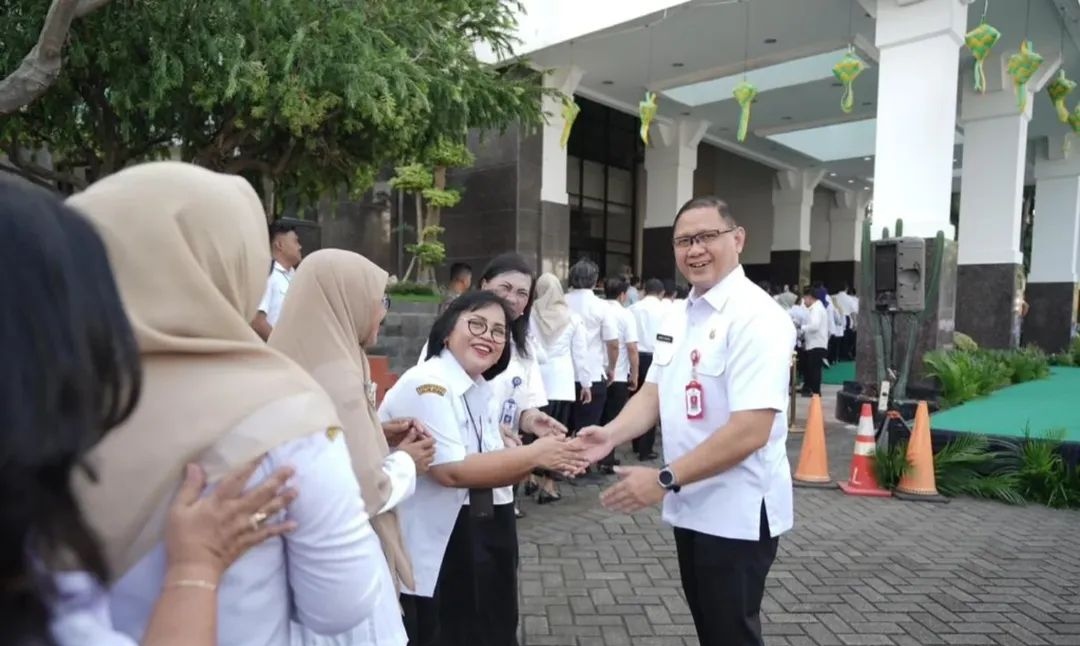 Dalam kesempatan tersebut, Kepala Dinas Pendidikan Jawa Timur, Aries Agung Paewai, bersama jajaran kepala perangkat daerah dan ASN lainnya turut bersalaman dengan Gubernur Jawa Timur.