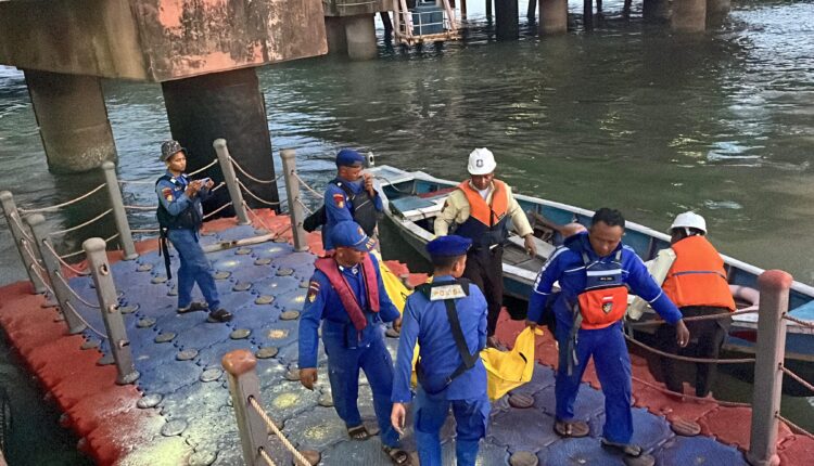 Evakuasi jasad korban berhasil diangkat dari perairan dan dibawa ke dermaga untuk pemeriksaan awal.