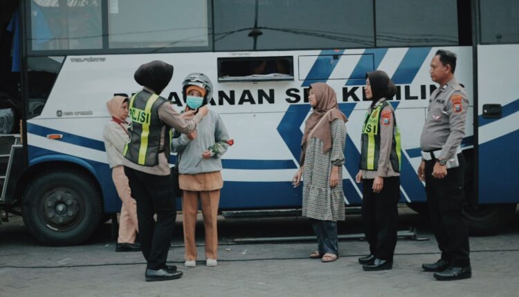 Peringati Hari Kartini, Srikandi Satlantas Polres Gresik Bagi Mawar dan Helm untuk Pemohon SIM Perempuan