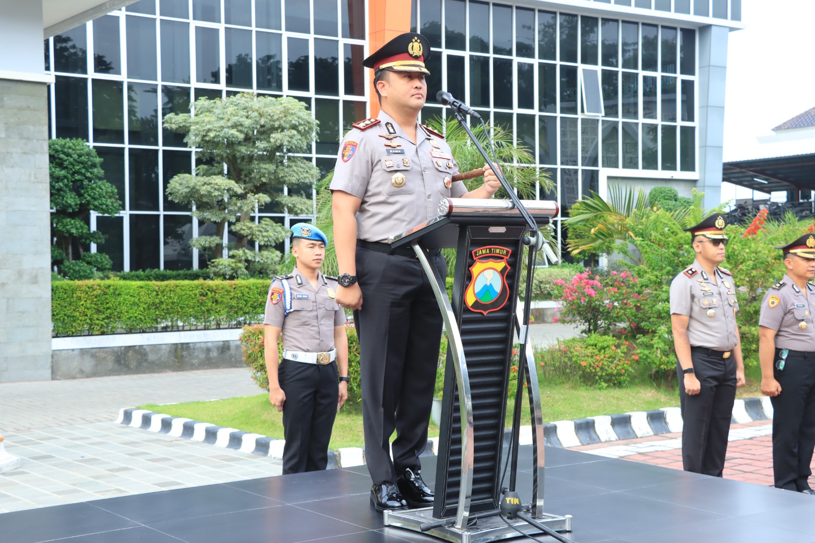 Apel tersebut dihadiri Wakapolres Gresik Kompol Shabda Purusha Putra, jajaran Pejabat Utama (PJU), Kapolsek, personel Bintara, ASN Polri, serta siswa Latja Brimob SPN Polda Jawa Timur.